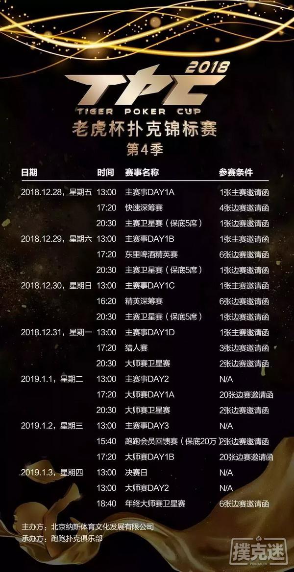 年关将至,距离2018 TPC 老虎杯第四季暨年终总决赛也越来越近了,老虎杯作为国内的顶级扑克赛事之一,比赛的奖励非常丰厚,第四季保底400万旅游基金+年终总决赛200万旅游基金。为了这份光环的荣耀与足够吸引的奖励,广大德州扑克爱好者们,你准备好了吗?