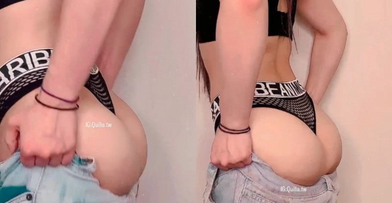 有「暗黑蝴蝶姐姐」封號的JKF女郎Quilla奎拉,最近在Instagram分享了一段她試穿兩件牛仔褲的影片,想詢問粉絲喜歡哪一件,沒想到Quilla奎拉的蜜桃又翹又飽滿,所以她拉上褲頭的時候大卡屁,白嫩臀肉直接溢出來,好不容易才拉上。沒想到影片太火辣,直接讓粉絲歪樓了。