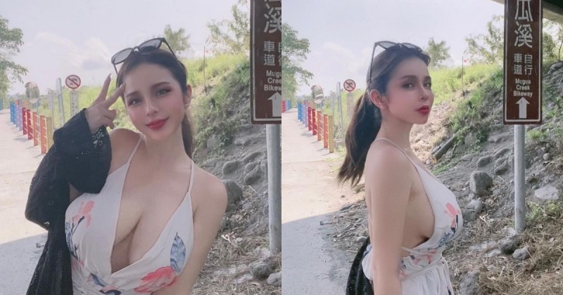 JKF女郎「Mandi香菱」擁有一對傲人的H罩杯豪乳,臉蛋精緻漂亮之餘還有著火辣辣好身材,甚至被封為「木瓜姐姐」,絕對是名副其實份量飽滿!前陣子Mandi香菱跑去木瓜溪橋拍照玩耍,身穿深V小洋裝的她,不光是正面露出「人字深溝」,側面也有包不住的白皙乳球!木瓜姐姐來到木瓜溪橋,也只是剛剛好而已捏~